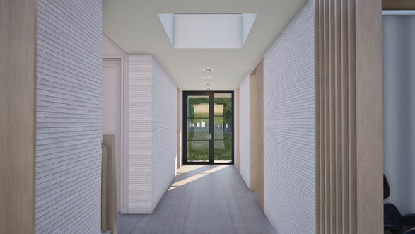 Indoor air quality is enhanced through ERVs (Energy Recovery Ventilators) which bring continuous fresh air into the space.